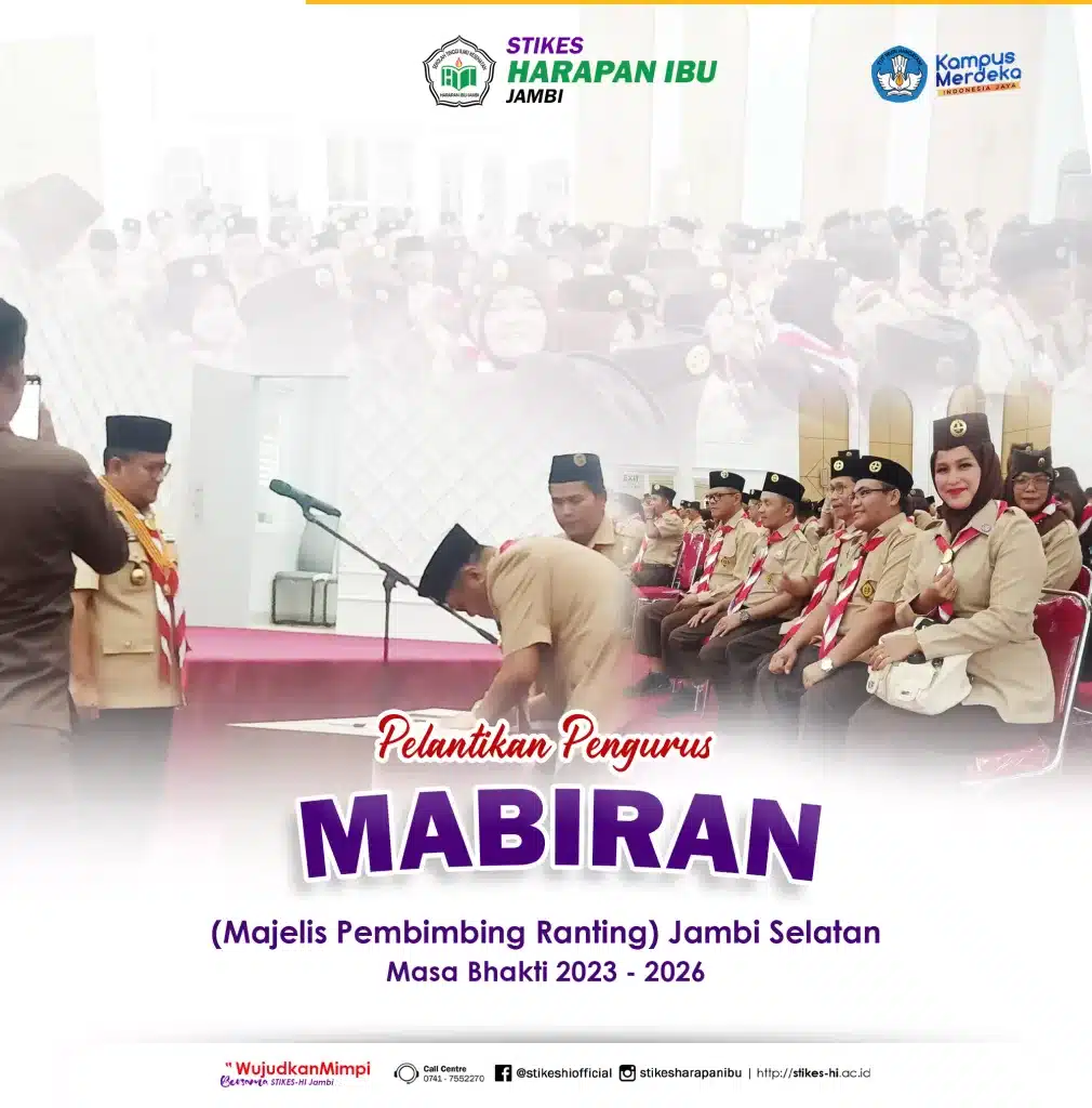 STIKES Harapan Ibu Jambi menghadiri kegiatan Pelantikan Pengurus Majelis Pembimbing Ranting (MABIRAN) Jambi Selatan Masa Bhakti 2023-2026, yang diwakili oleh Wakil Ketua III Ibu Putri Saraha Harahap, SKM., M.K.M.