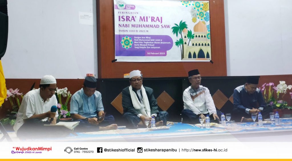 STIKES Harapan Ibu Jambi beserta mahasiswa, Dosen dan Tenaga Kependidikan memperingati perayaan Isra Miraj Nabi Muhammad SAW. Momentum tonggak sejarah turunnya wahyu Allah SWT kepada Rasulullah tentang perintah salat.