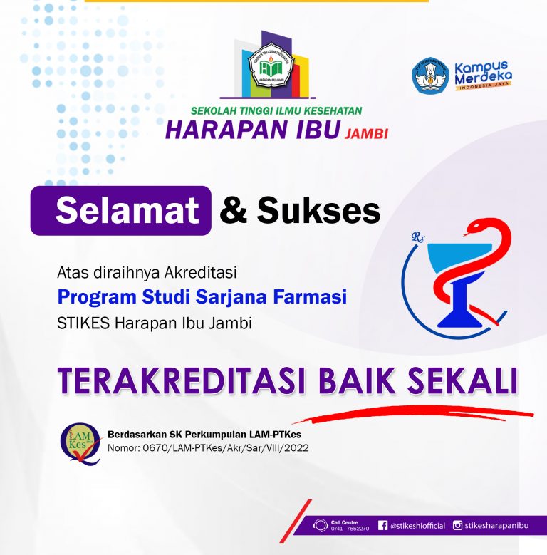 Share Facebook Twitter Pinterest WhatsApp Alhamdulillah, Program Studi farmasi @stikesharapanibu memperoleh Akreditasi Baik Sekali Atau “B” dari Lembaga Akreditasi Mandiri Pendidikan Tinggi Kesehatan Indonesia (LAM-PTKes). Link Downlad SK/Sertifikat Akreditasi oleh LAMP-PT KES Click here